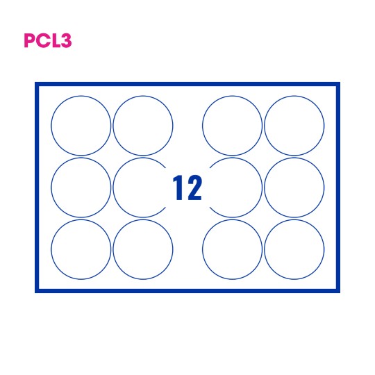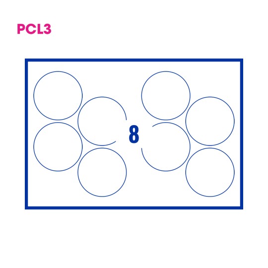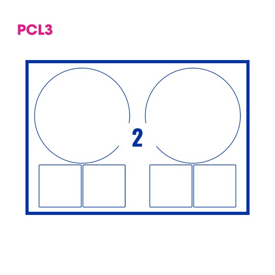 The Patented PCL3 format. Designed for incredible printing stability, every PCL3 SRA3 label layout has 13mm grip and lay edges with A4 crop marks embedded within the sheet. The 2 PCL A4 formats within the PCL3 sheet also retain the familiar 2mm gutters between the labels for full bleed printing and 13mm grip and lay edges of their own.