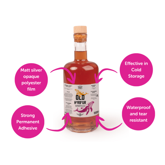 The aggressive characteristics of the adhesive make the product particularly suitable for application to ‘difficult’ surfaces including tight radius e.g. ampoules. It is extremely water, light and heat resistant and is suitable for labelling cold and humid surfaces. In combination with the polyester face it is an excellent solution for labelling situations requiring resistance to ageing e.g. out door use, name plates. Approved for direct contact on dry and 'moist’ non-fatty foods. No heavy metals are used in the manufacturing process and typical contents are less than 1 ppm.
