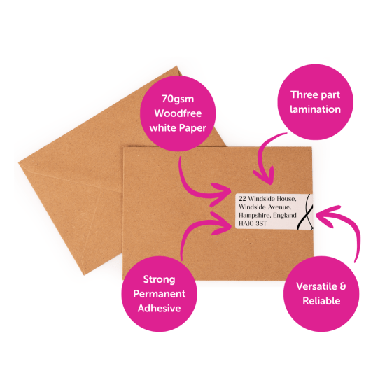 - A laminate consisting of three parts: the bottom label is used to stick to the goods and the top label can then be removed and stuck to documents as required